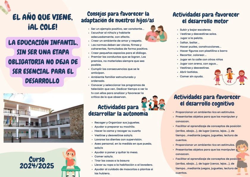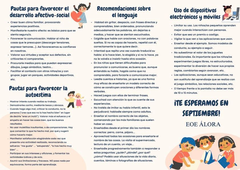 "¡Atención familias! Desde el EOE de Álora, nos complace informarles que la orientadora de nuestro colegio ofrecerá una charla orientativa para las familias del alumnado de Infantil de 3 años, para el curso escolar 2024-25. Es fundamental su asistencia para recibir asesoramiento, guía y recomendaciones generales de la mano de nuestra especialista en orientación.