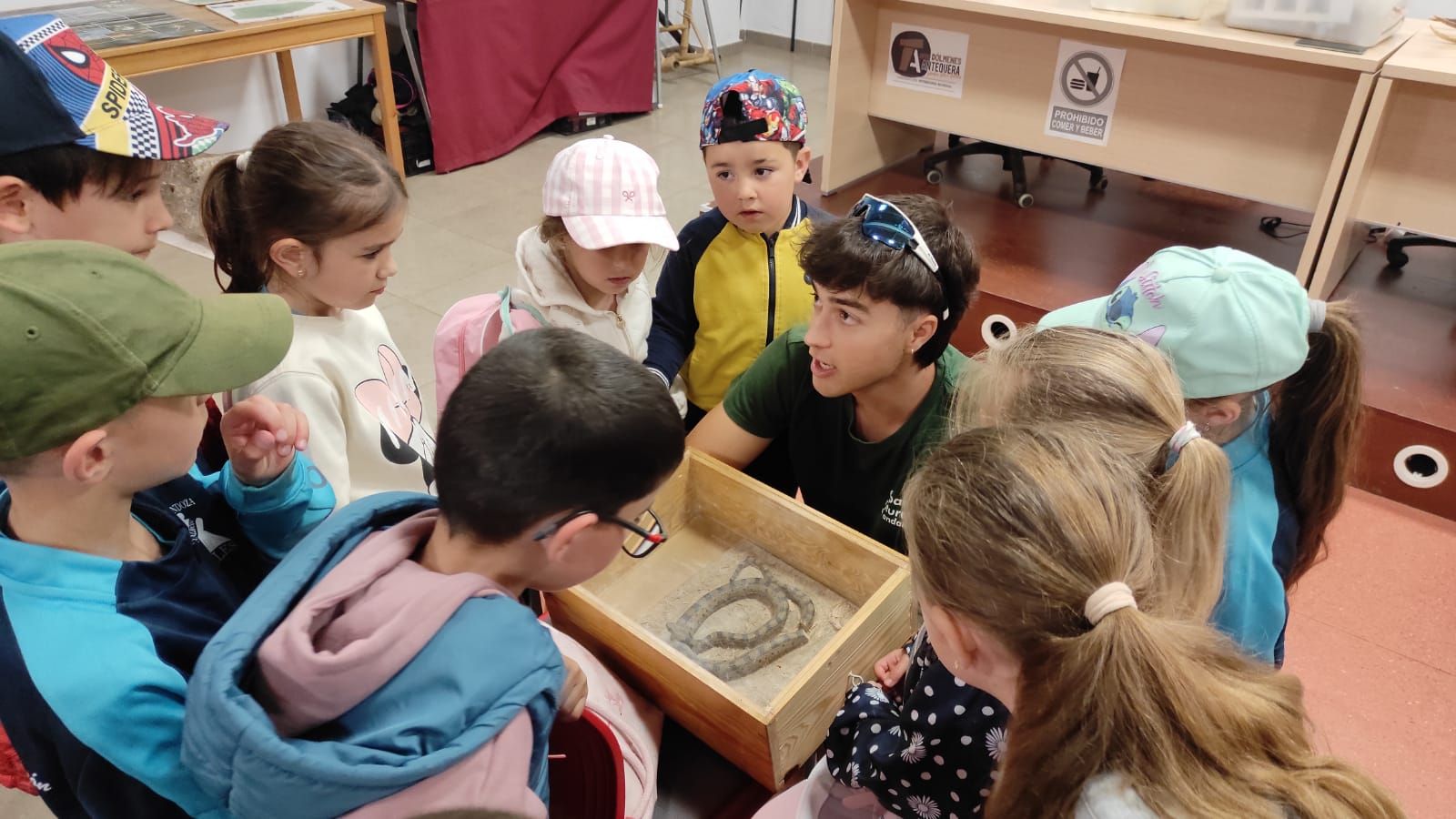 Nada más llegar, se adentraron en un auténtico viaje al pasado con el Taller de Prehistoria. ¿Cómo vivían los primeros pobladores del Torcal? ¿Qué comían? ¿Qué creían? A través de juegos y actividades, los niños y niñas fueron respondiendo estas preguntas mientras se convertían, por un rato, en auténticos habitantes de la prehistoria.