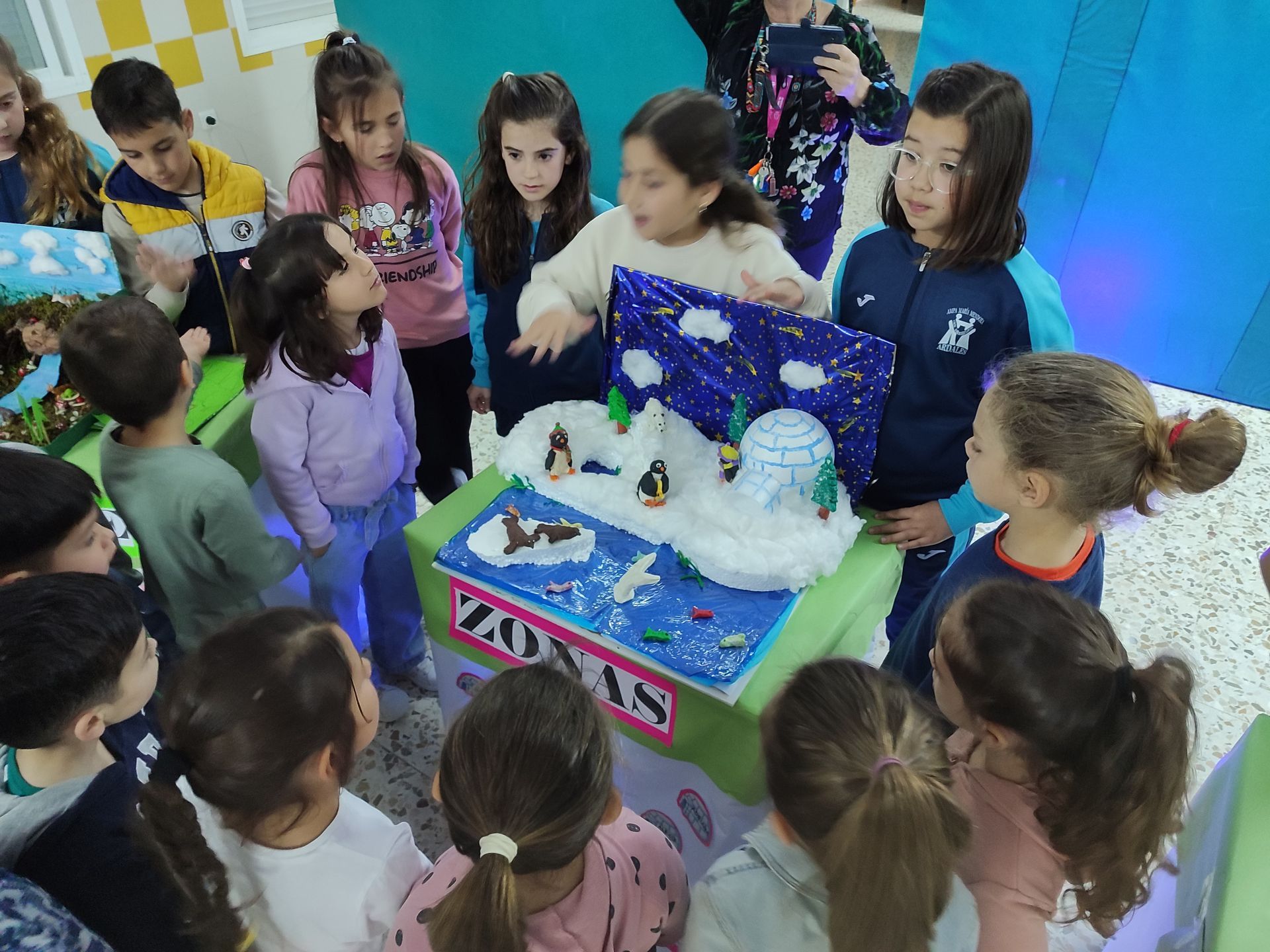 - Después, los visitantes han recorrido los stands de los dioramas, donde nuestros estudiantes de 3º han actuado como guías expertos explicando cada ecosistema representado.
