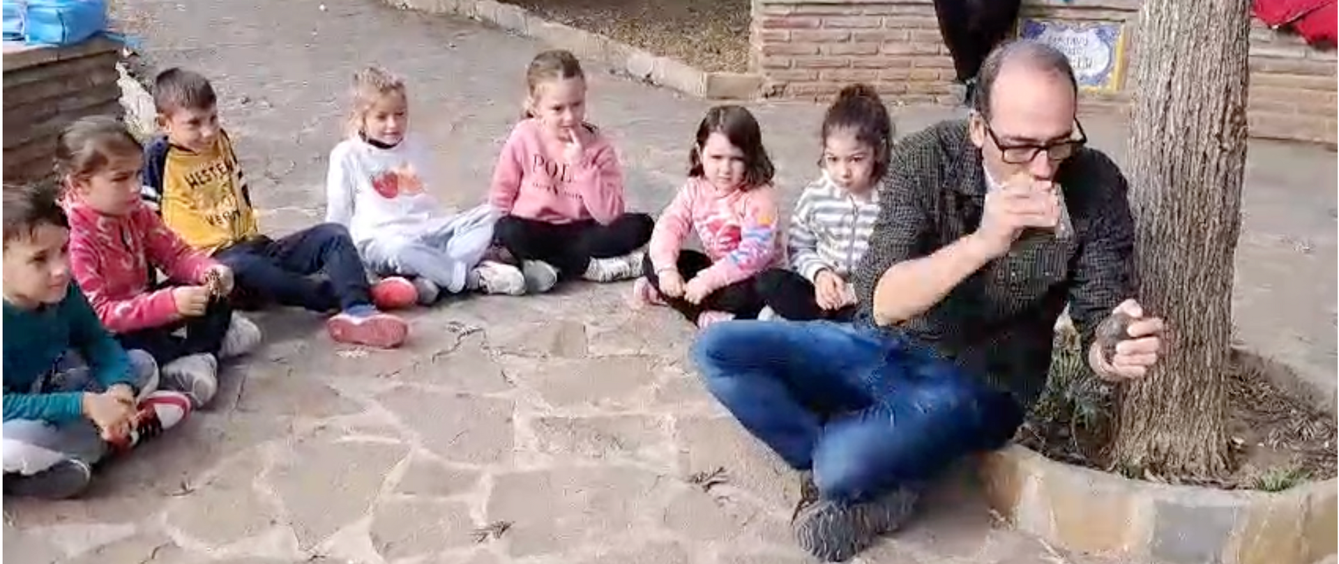 Gerardo, también ha sorprendido a nuestro pequeñajos haciendo una parada para comentar la historia de las dos fuentes romanas.