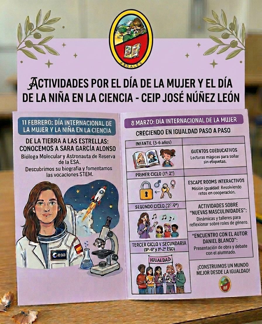 Con motivo del Día Internacional de la Mujer y la Niña en la Ciencia, todo el centro ha trabajado la inspiradora biografía de Sara García Alonso, bióloga molecular y astronauta de reserva de la Agencia Espacial Europea.